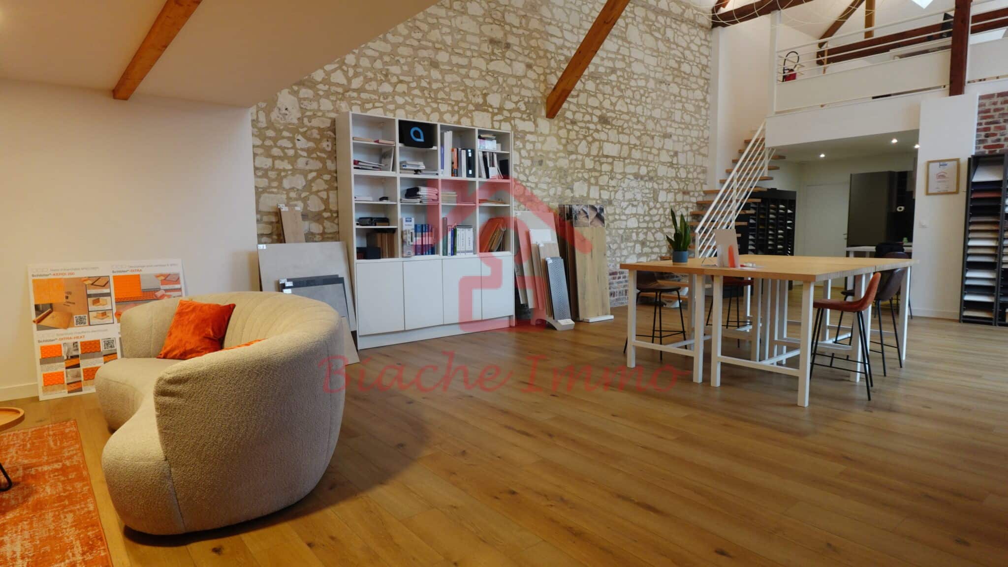 Loft de 170m² avec cuisine et toilettes normes PMR + 2 mezzanines.